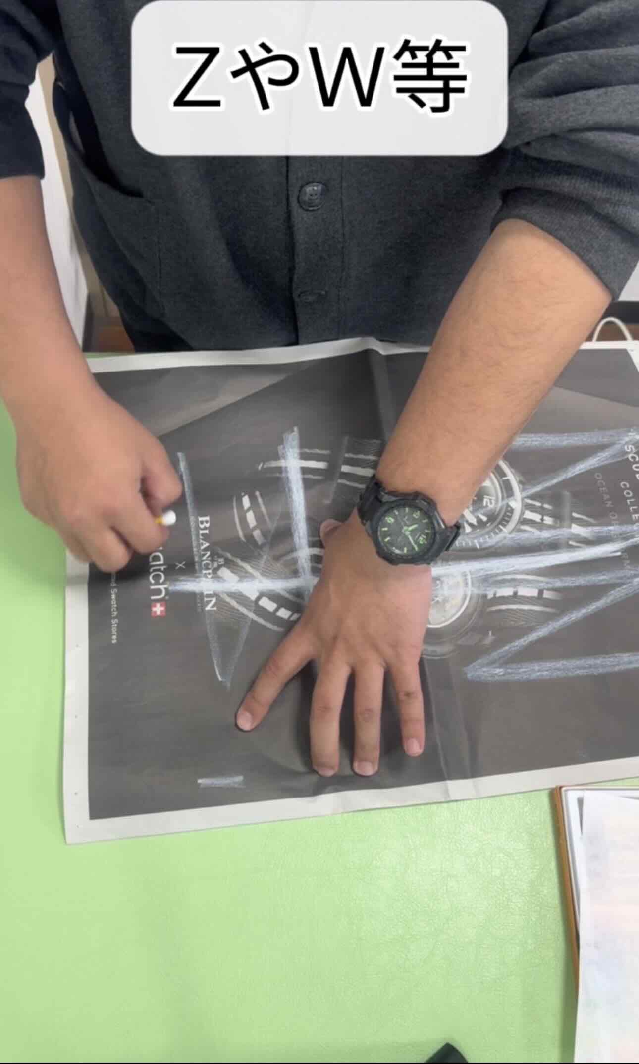 ③縦横塗り重ねたらZやW、△◻︎など斜めや方向転換を混ぜて動かしていきましょう。